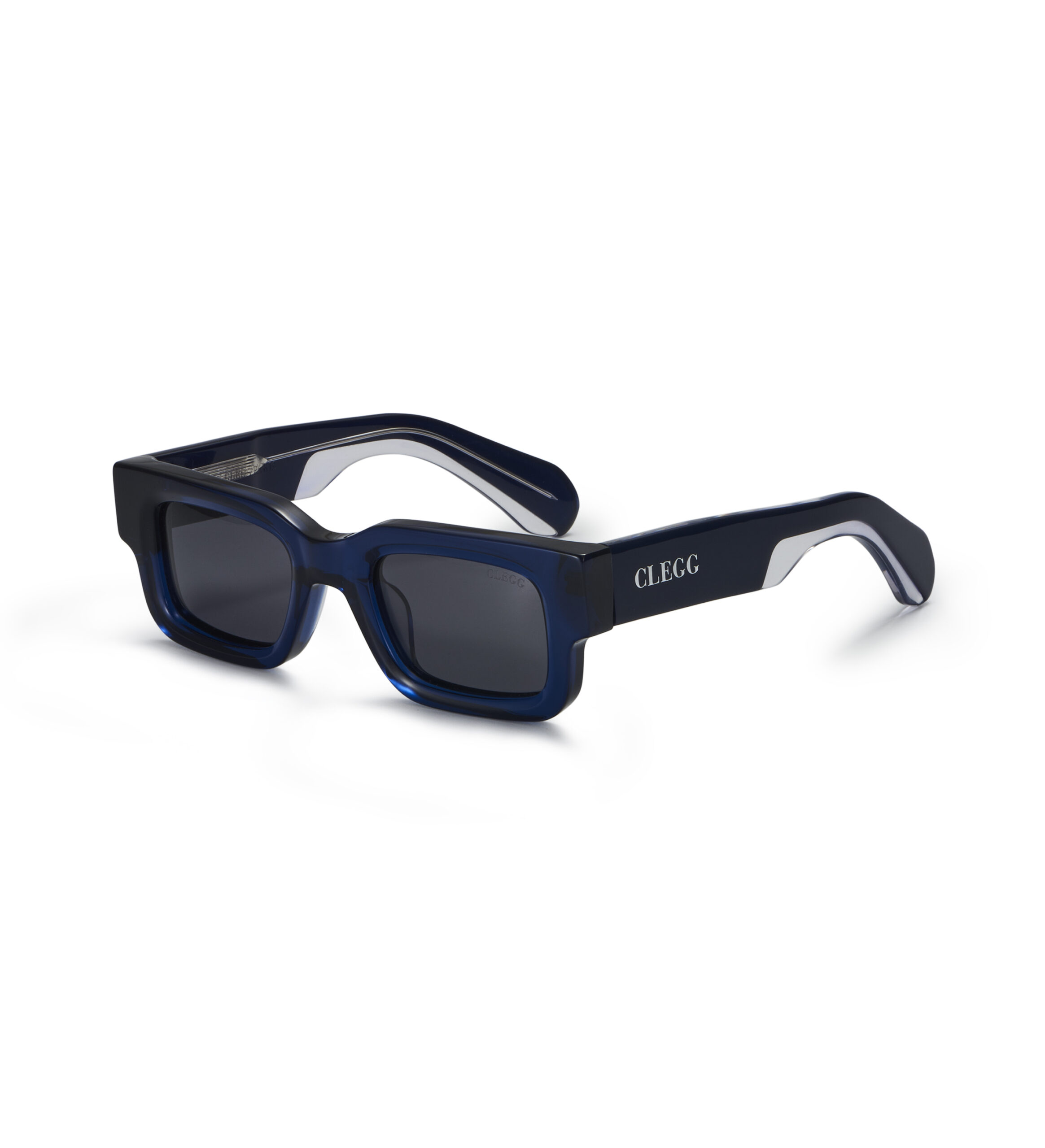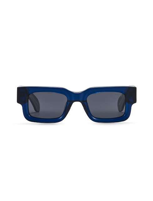 Monture rectangulaire en acétate, fabriquée en Italie. Un design aux lignes nettes pour un style urbain et contemporain. Verres noirs pour une allure sobre et affirmée