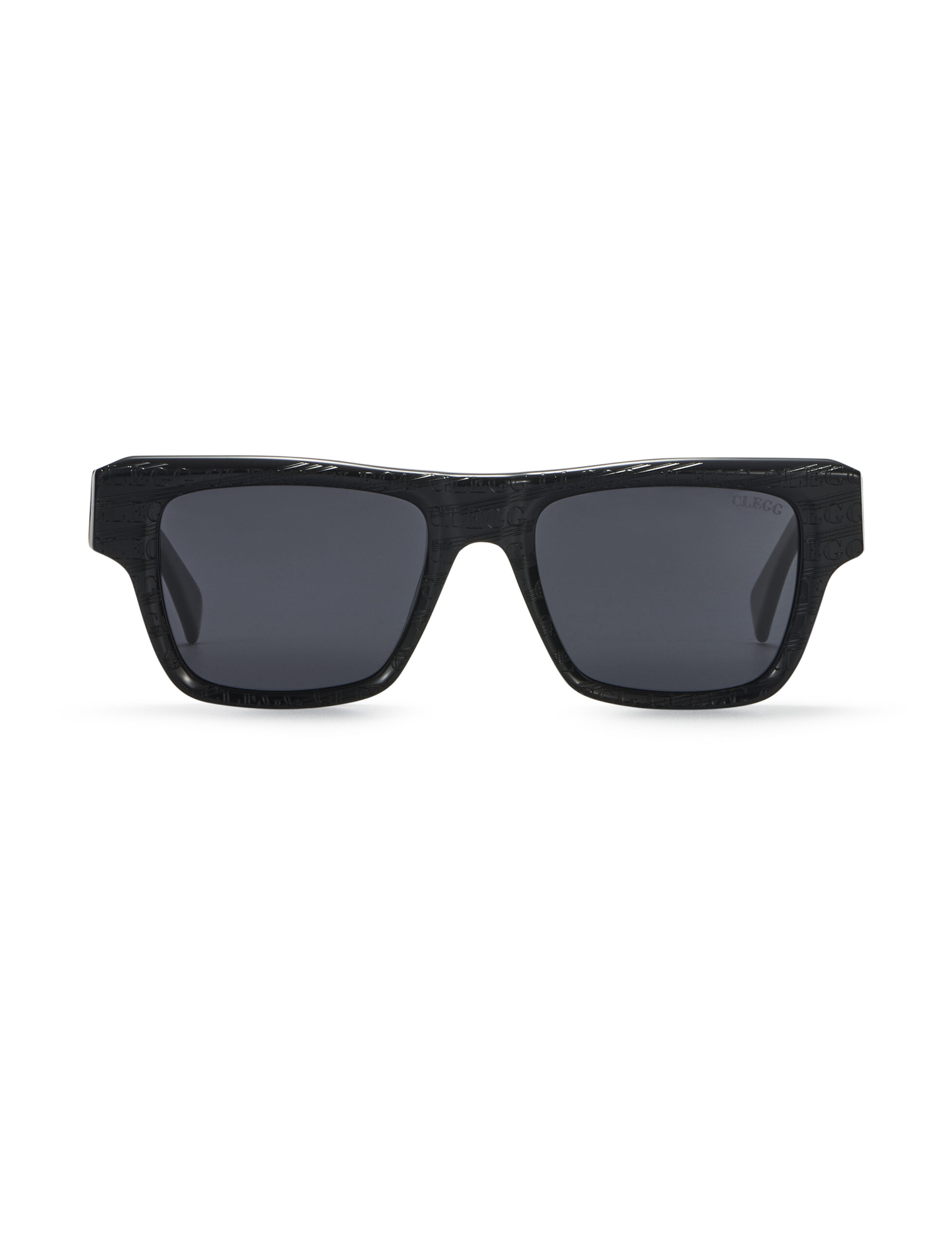 Monture rectangulaire en acétate, fabriquée en Italie. Un classique revisité, facile à porter, pour un style sûr et intemporel. Verres noirs pour une allure élégante au quotidien.